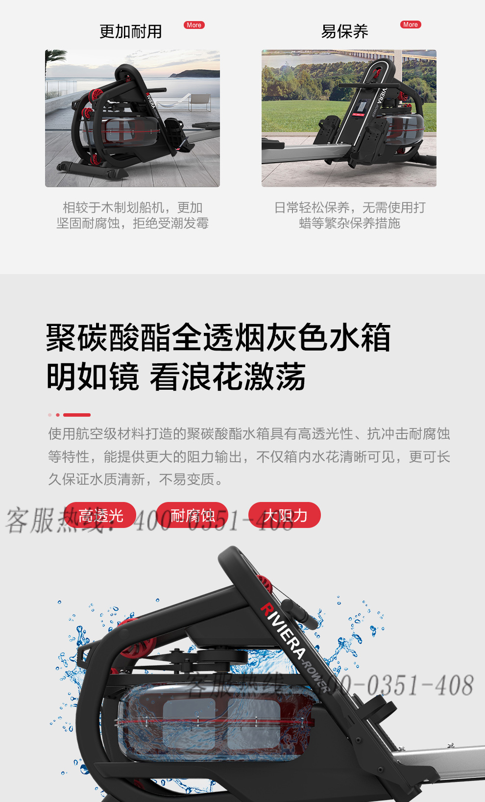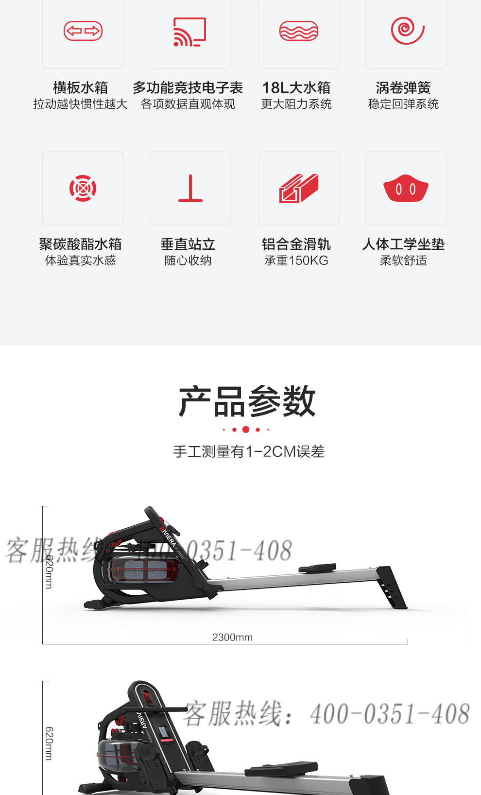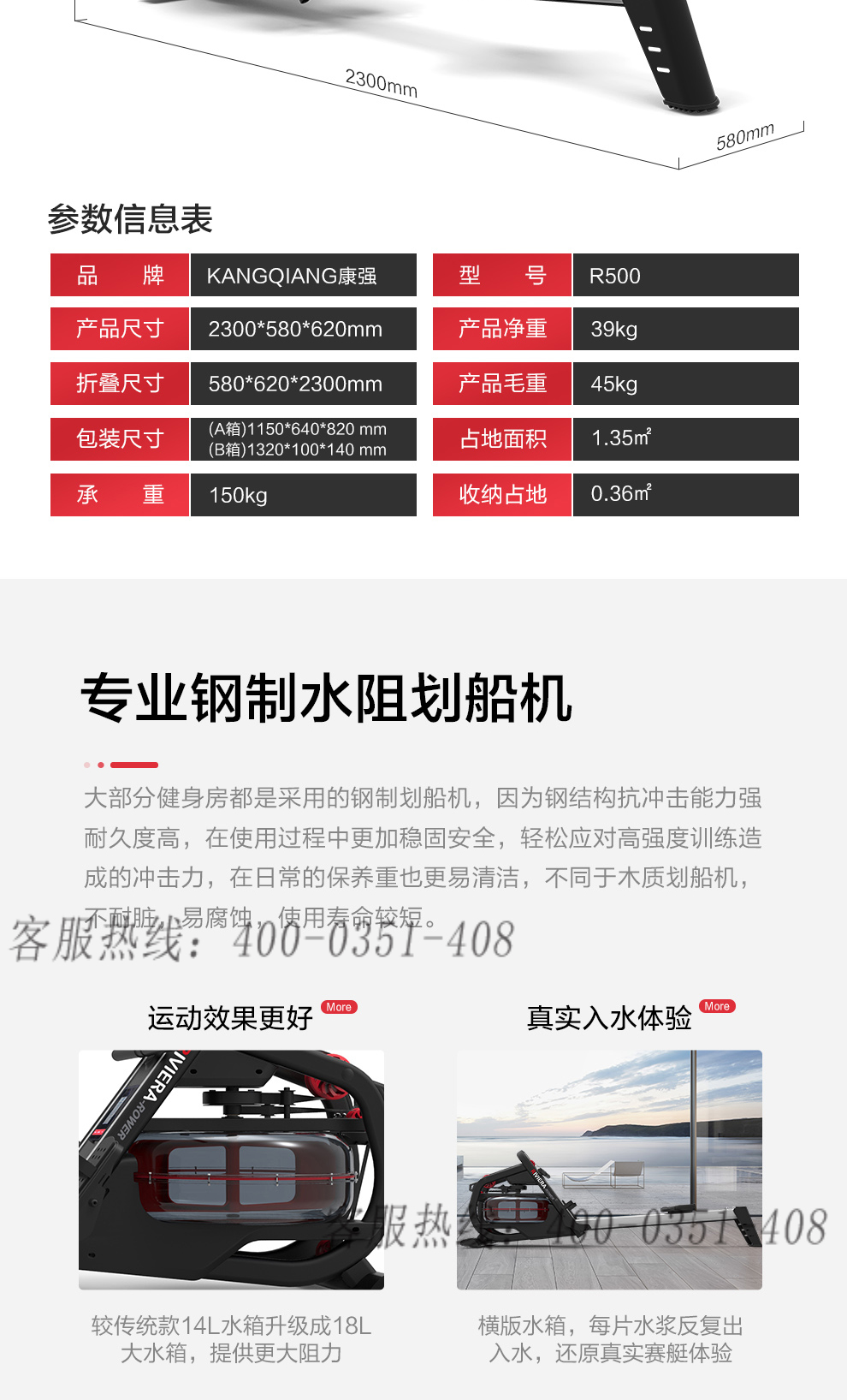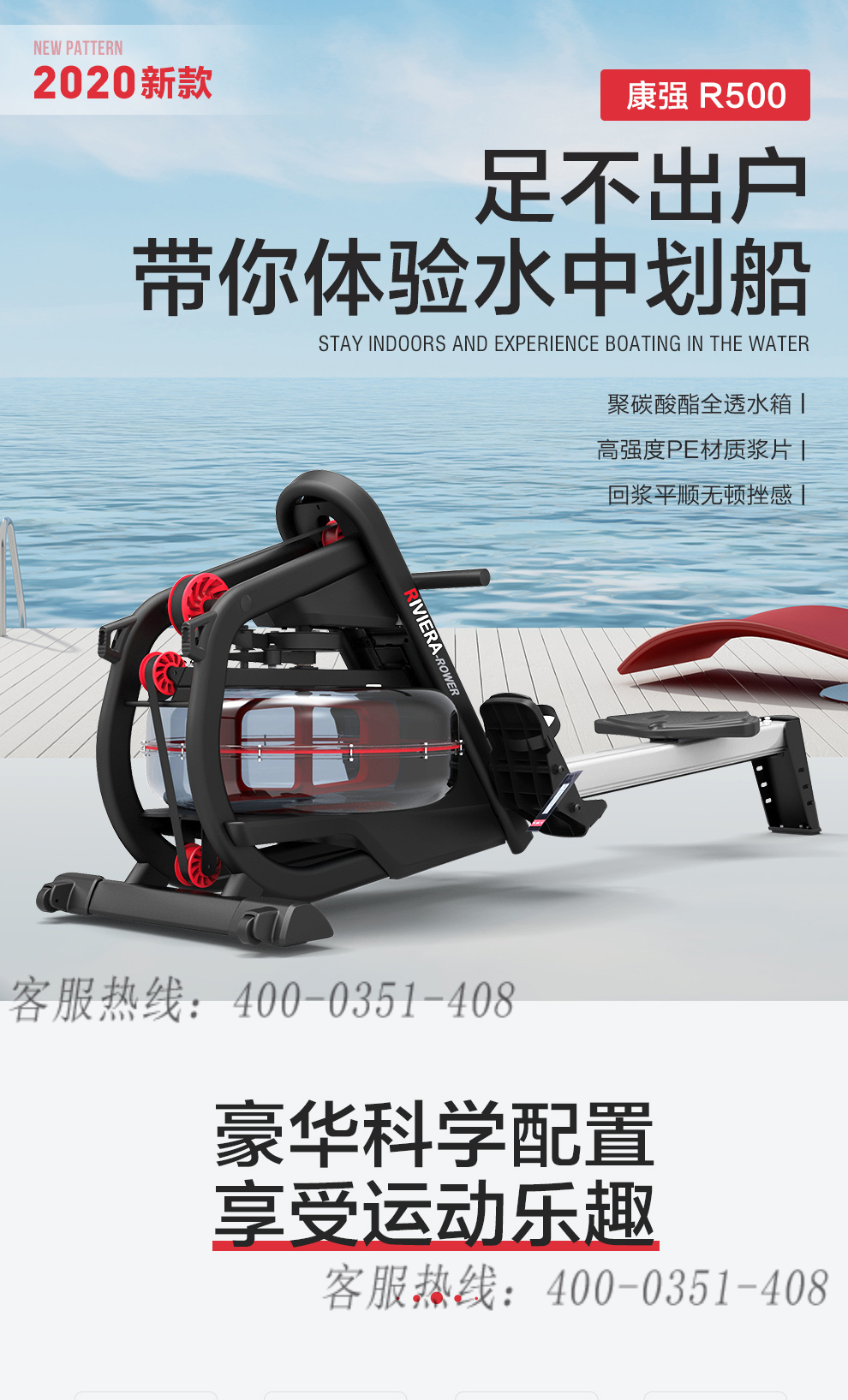 必一运动水阻划船机R500室内划桨运动健身器材商用划艇机家用划船机划船器水阻 R500