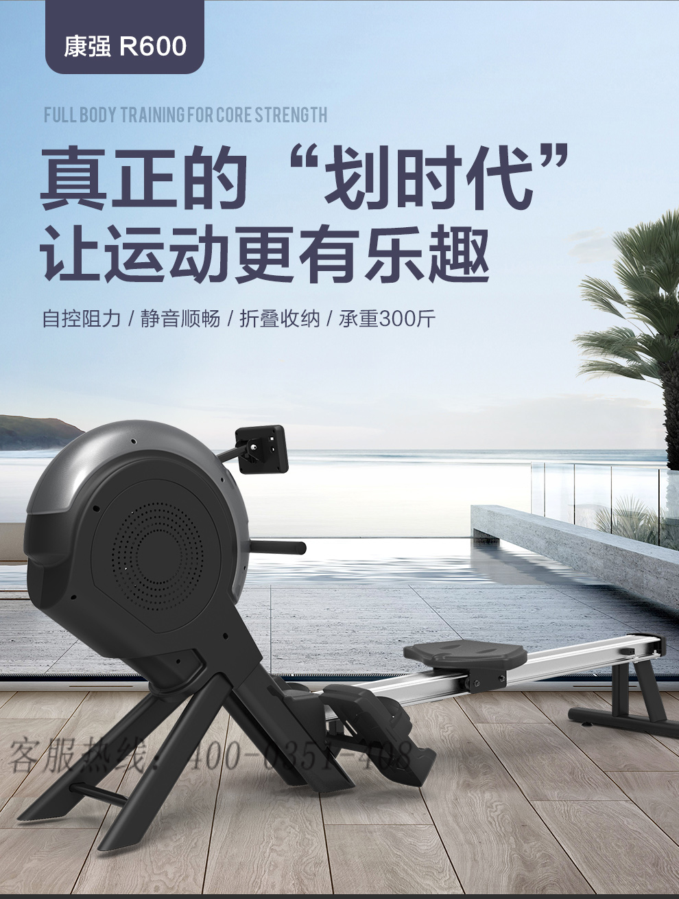 必一运动划船机磁阻R600室内划桨运动健身器材商用划船器商用磁控划船机 R600