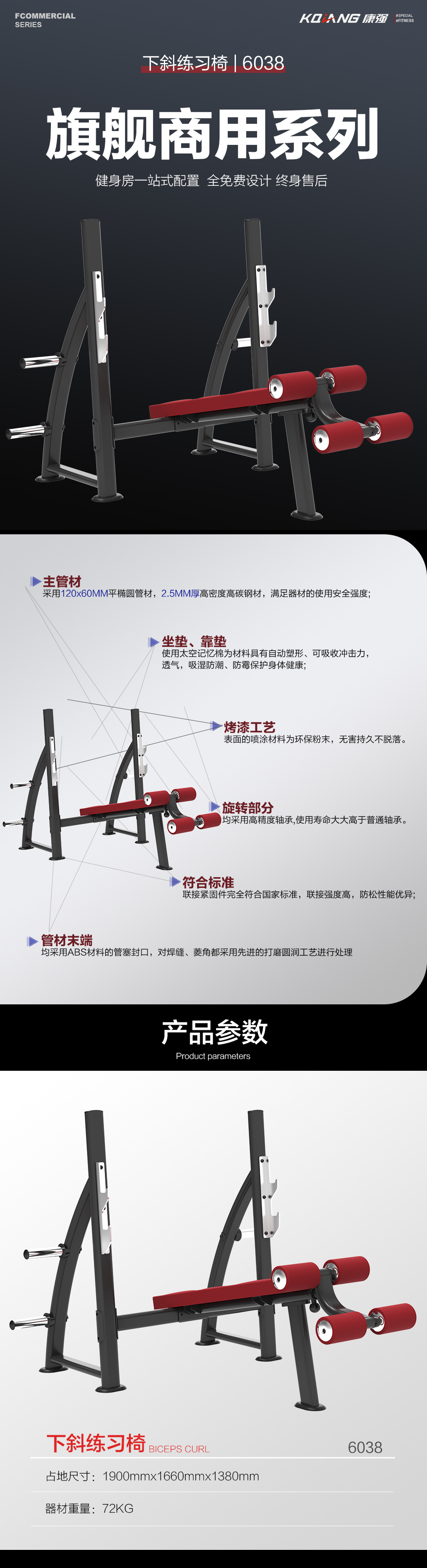 必一运动下斜练习椅卧推架商用健身器材健身房团购综合训练器 6038下斜练习椅