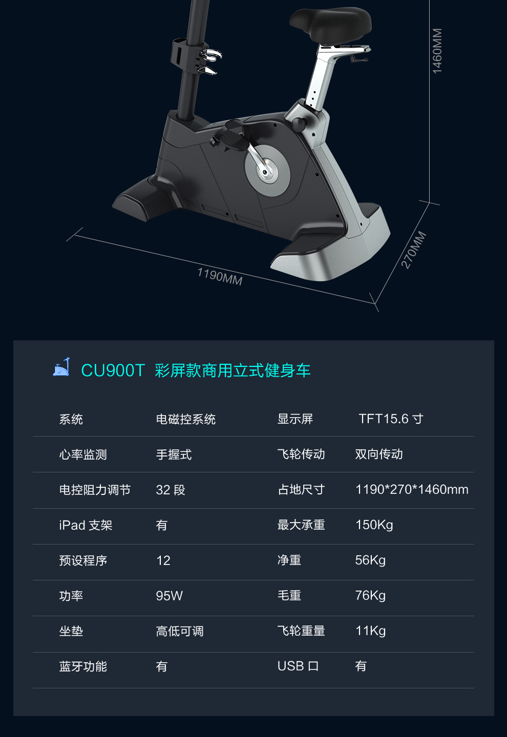 必一运动商用健身车CU900T立式单车磁控车自发电健身车健身房专用